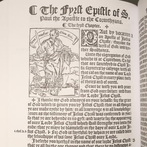 Originally printed in 1534 and reprinted in 1536, this edition preserves an important stage in the history of Tyndale’s translation. The 1536 printing is especially notable for its beautiful gothic black font and decorative drop cap lettering, features that help convey the visual character and historical presence of the work.