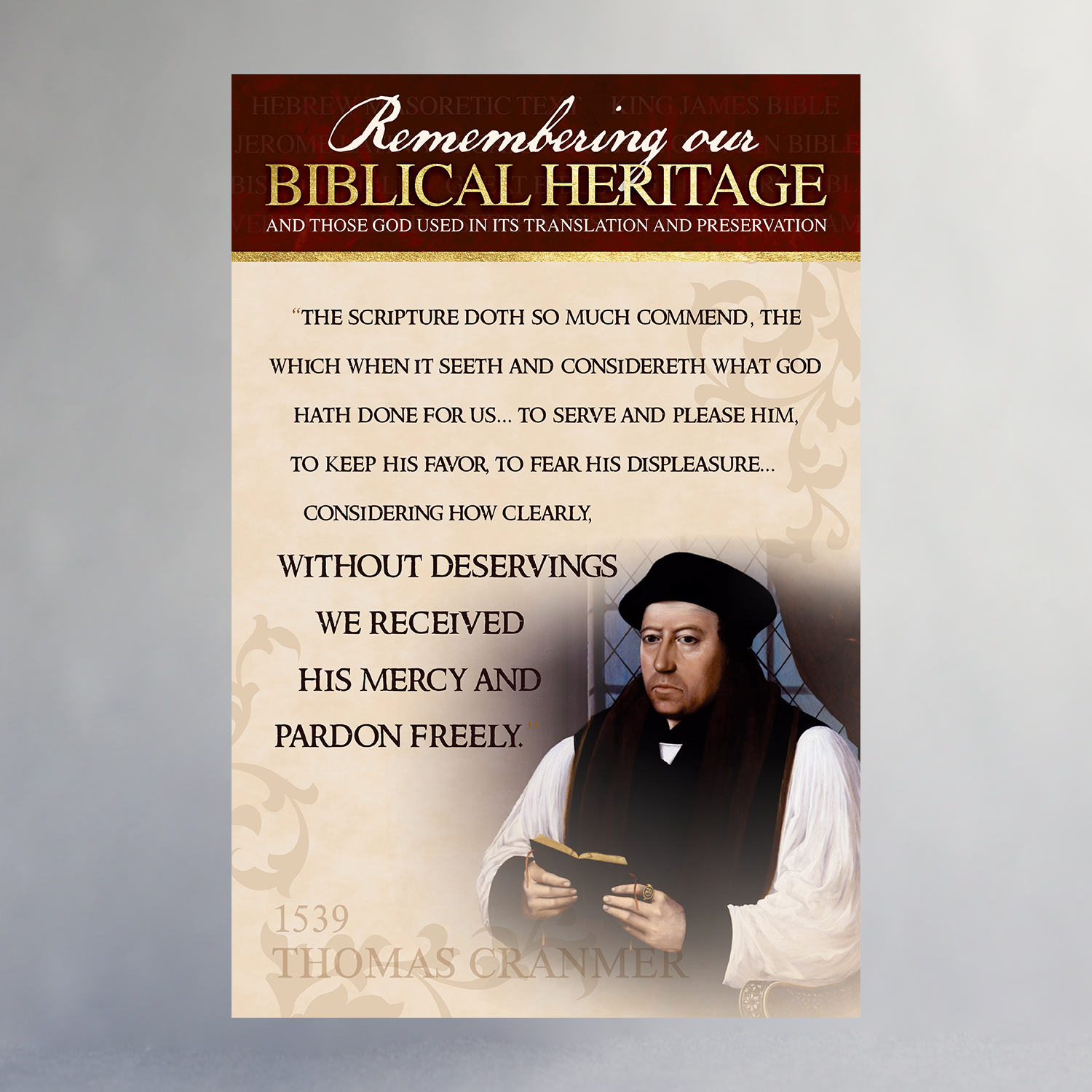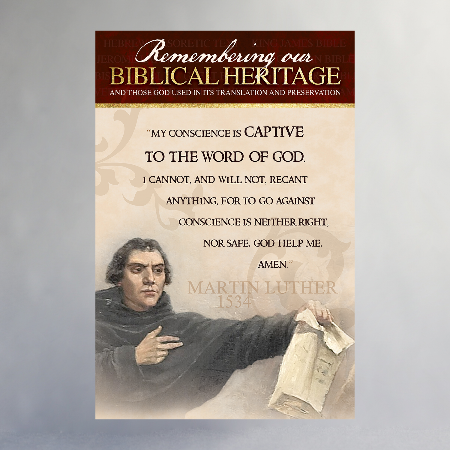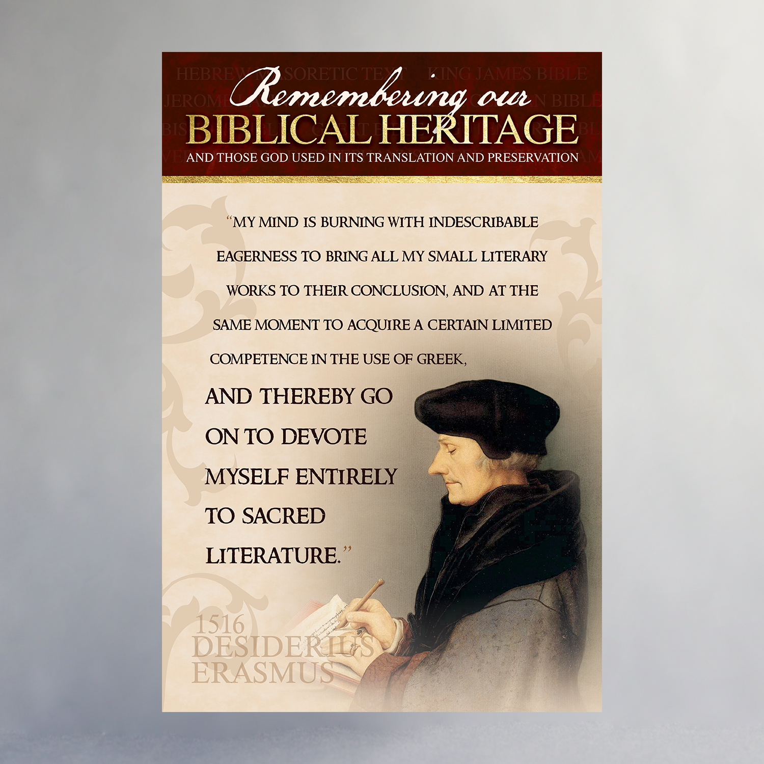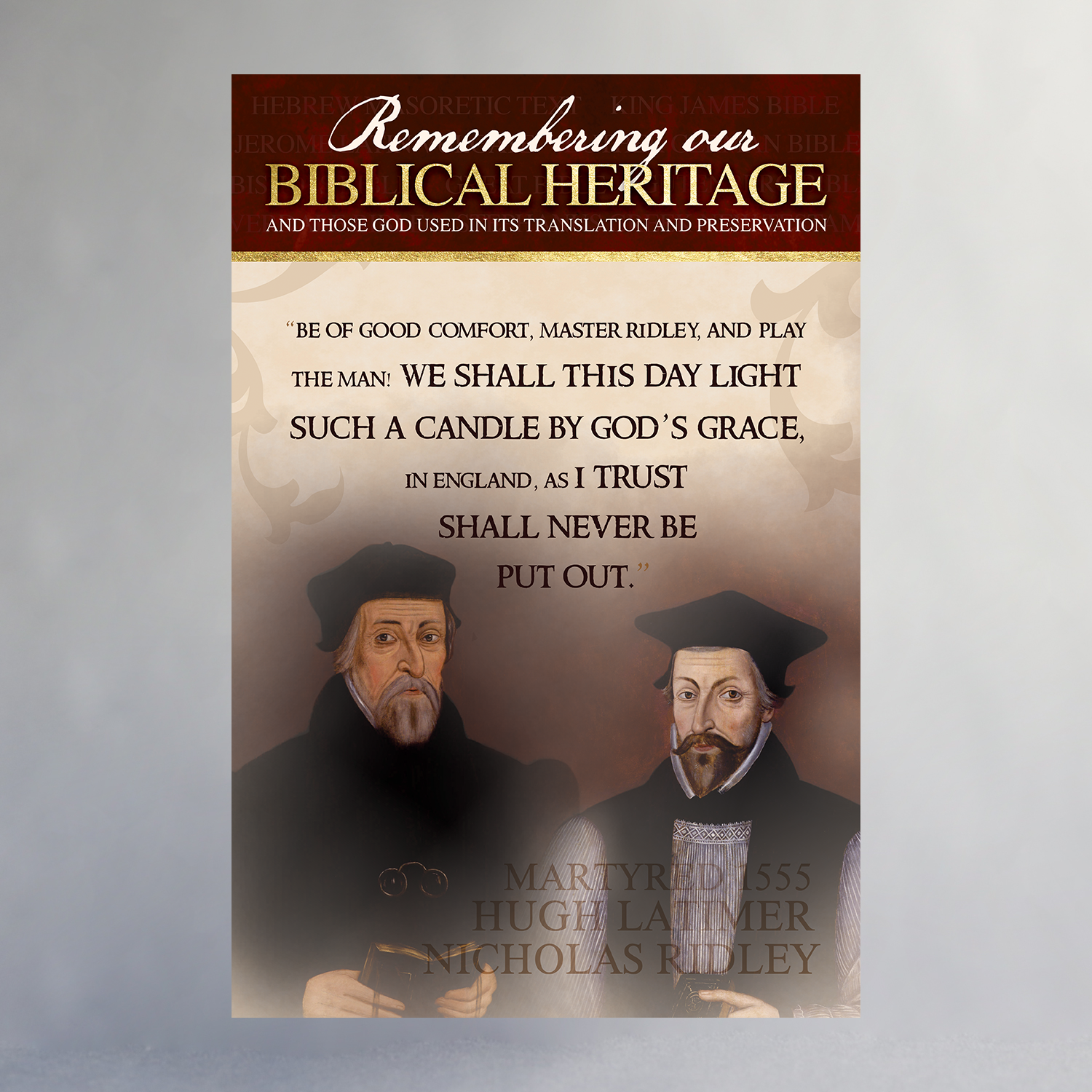 Created in celebration of the 400th Anniversary of the King James Bible, this poster series features many of the significant people, places, and printing processes that helped produce the English Bible. Available individually or as a set, only through the Biblical Heritage Exhibit.
